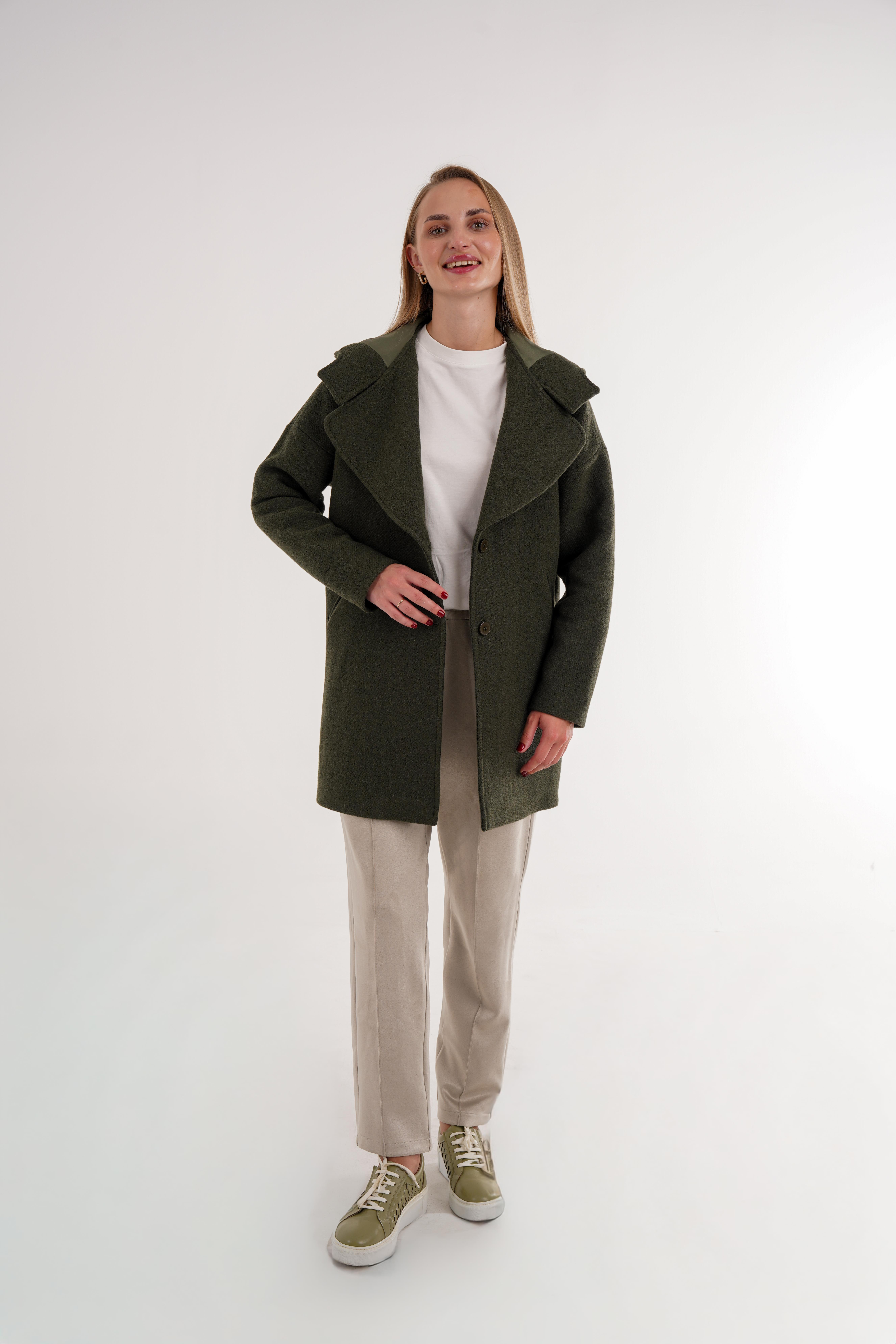 Kapüşonlu Şal Yaka Kısa Kaban Haki (NK2025K002)